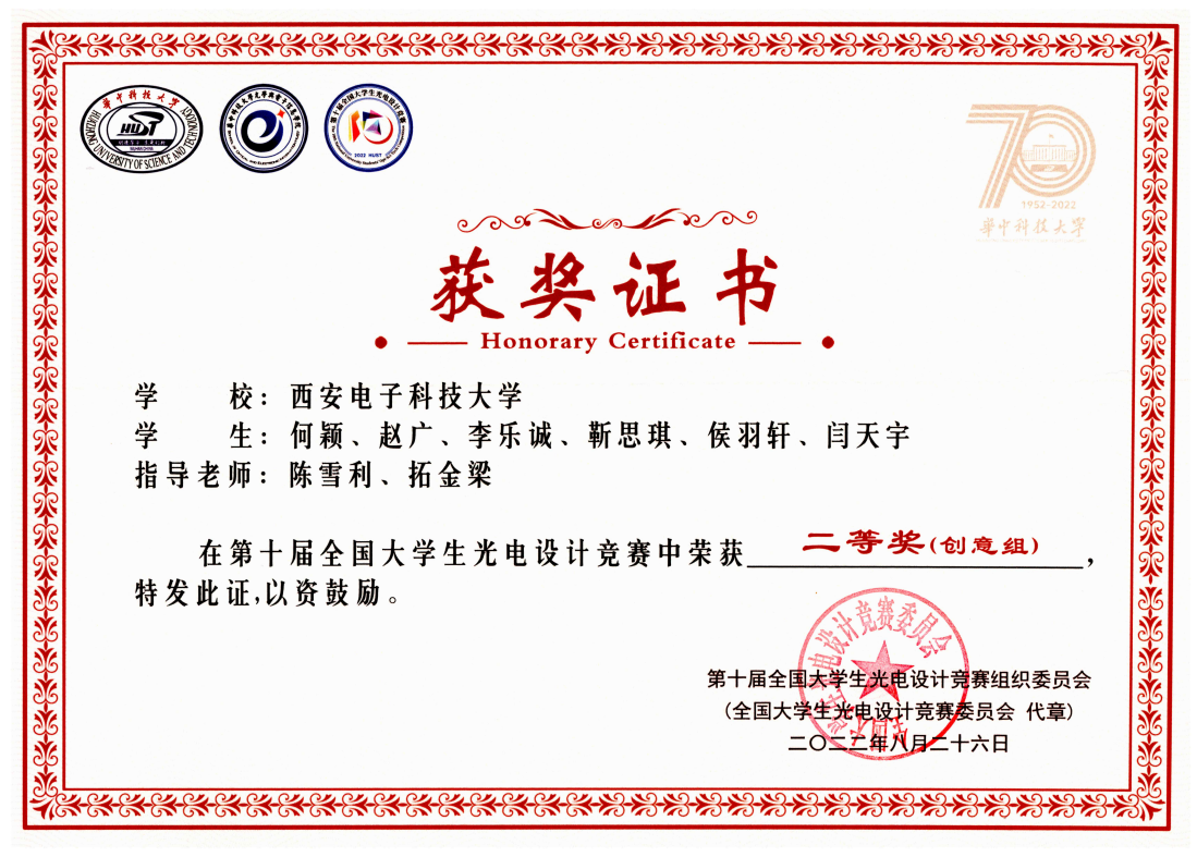 (通讯员:解培月 吕强)第十届全国老员工光电设计竞赛决赛于2022年8月26日在华中科技大学以线上创新赛形式圆满落幕,经过西北区赛和全国决赛阶段的激烈角逐,yl8858永利集团代表队获得2项国家二等奖、11项西北区赛奖的好成绩。