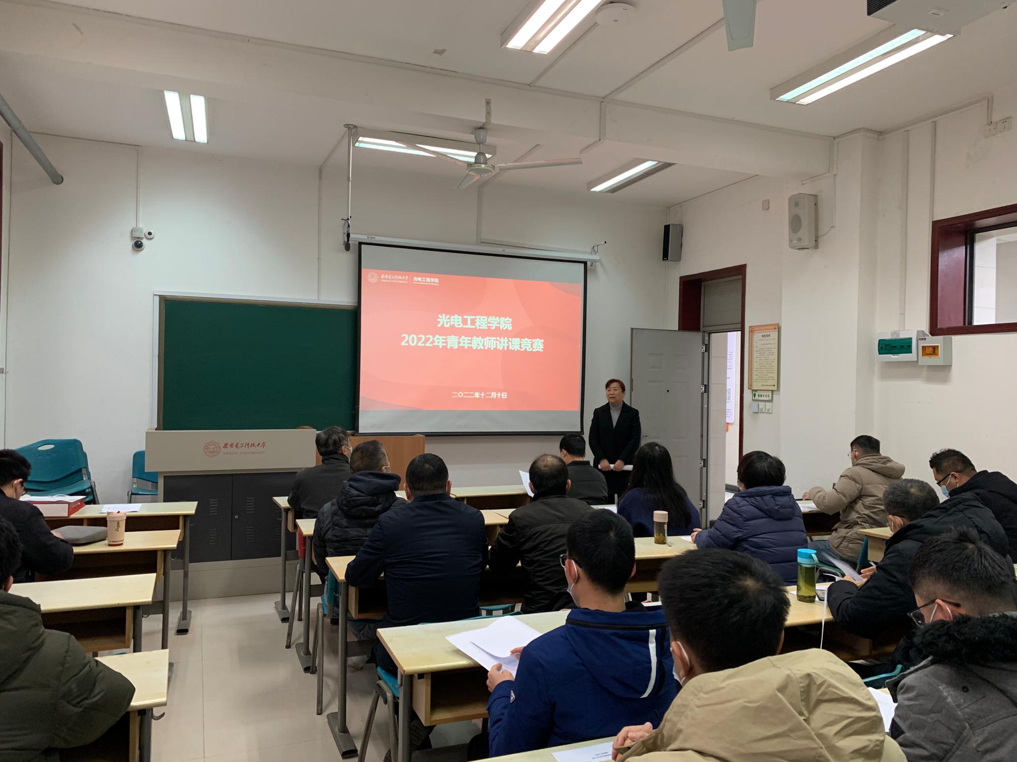 随后,辛红就本次竞赛的具体开展情况及相关要求做了说明。本次竞赛共有14名青年教师参加,分两组同时开展,分说课、教学展示及专家点评三个环节。每位参赛教师根据个人选题开展“说课”及现场教学两个项目,既要阐述清教学设计思路,也要现场演绎好课程重点教学内容。学院邀请了校级教学名师先进材料与纳米科技学院曹全喜教授、学校青年教师讲课竞赛一等奖获得者计算机科学与技术学院谢琨教授以及学院八位教师组成专家组,分别从教学设计、语言教态、教学内容、教学组织、教学特色等方面进行综合评价,共同为青年教师把脉指导,分享教学经验。