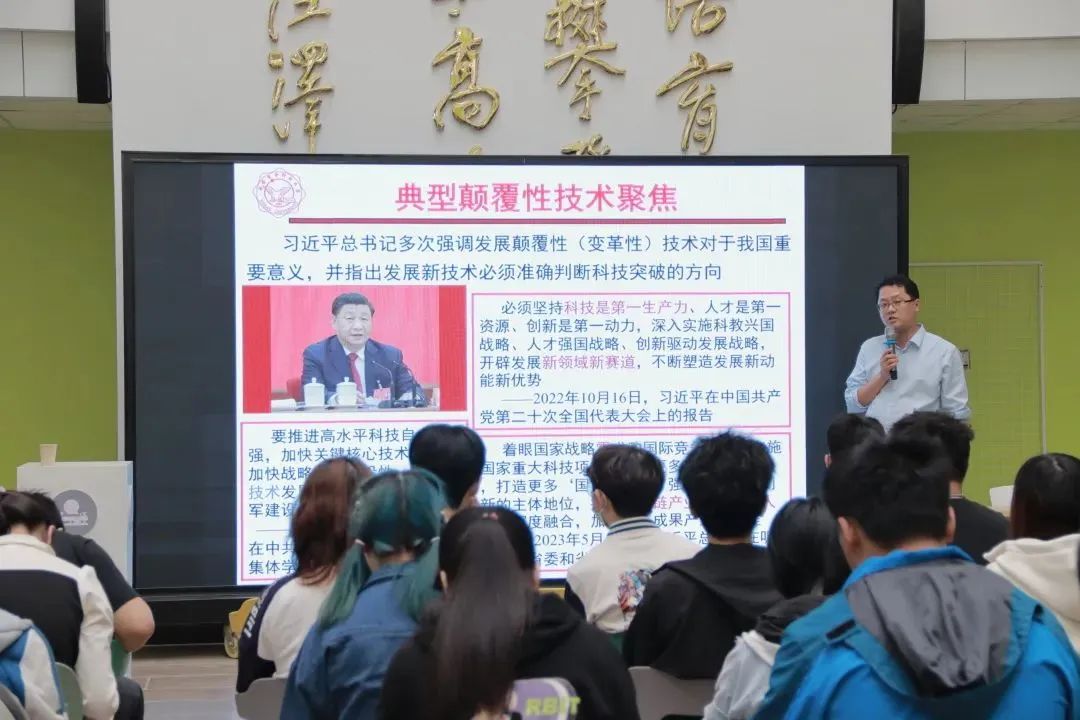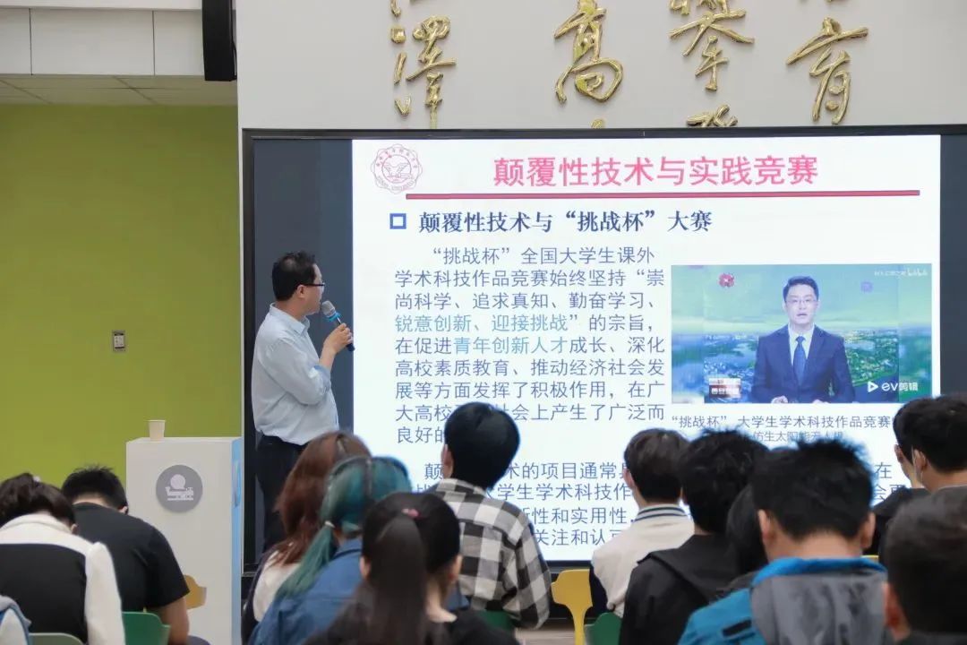 秦翰林从颠覆性技术概念产生及内涵演进引入,通过结合颠覆性技术与实践竞赛关系,详细阐述了颠覆性技术的重要性,并从员工身边实际案例出发,结合“互联网+”竞赛、挑战杯展开讲授,激发同学们的浓厚兴趣。随后对“互联网+”等双创大赛部分获奖项目进行简要介绍,着重讲解脑科学、量子信息等颠覆性技术在实际竞赛的重要应用。