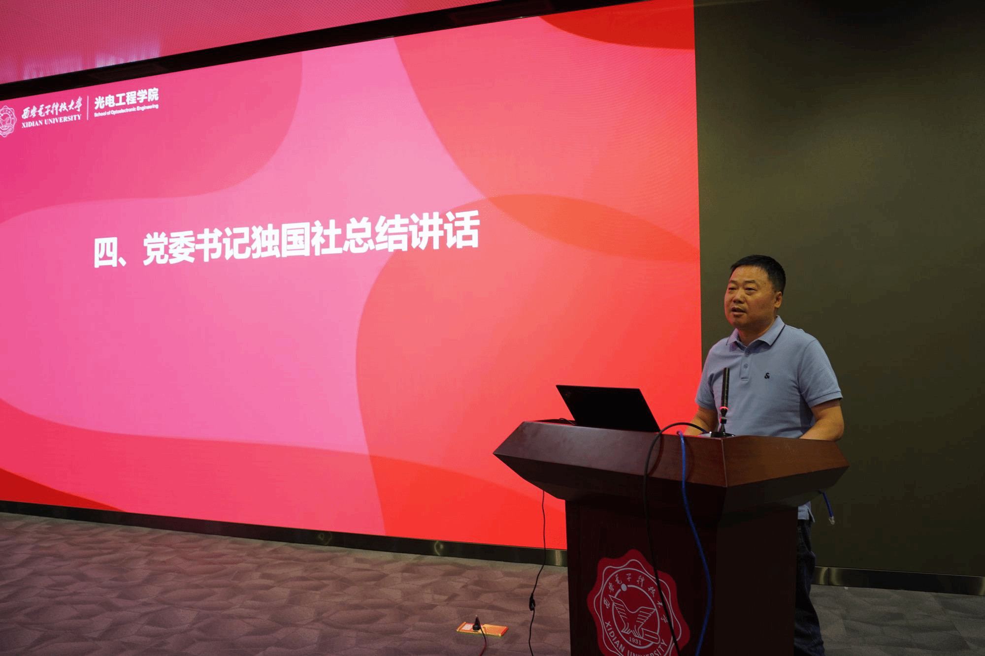 党委书记独国社在总结讲话中对今年以来学院全体教职工共同努力取得的各项成绩给予充分肯定。他表示,学院认真开展学习贯彻习近平新时代中国特色社会主义思想主题教育,深入开展调查研究和检视整改,不断深化主题教育成果。全体教职工展现了积极向上的奋斗姿态,以上半年不俗的成绩为顺利完成全年目标任务,取得更大成绩打下了坚实基础。希望下半年大家继续保持昂扬的精神面貌,迎接本科公司产品审核评估和学院成立以来的第一次党代会。