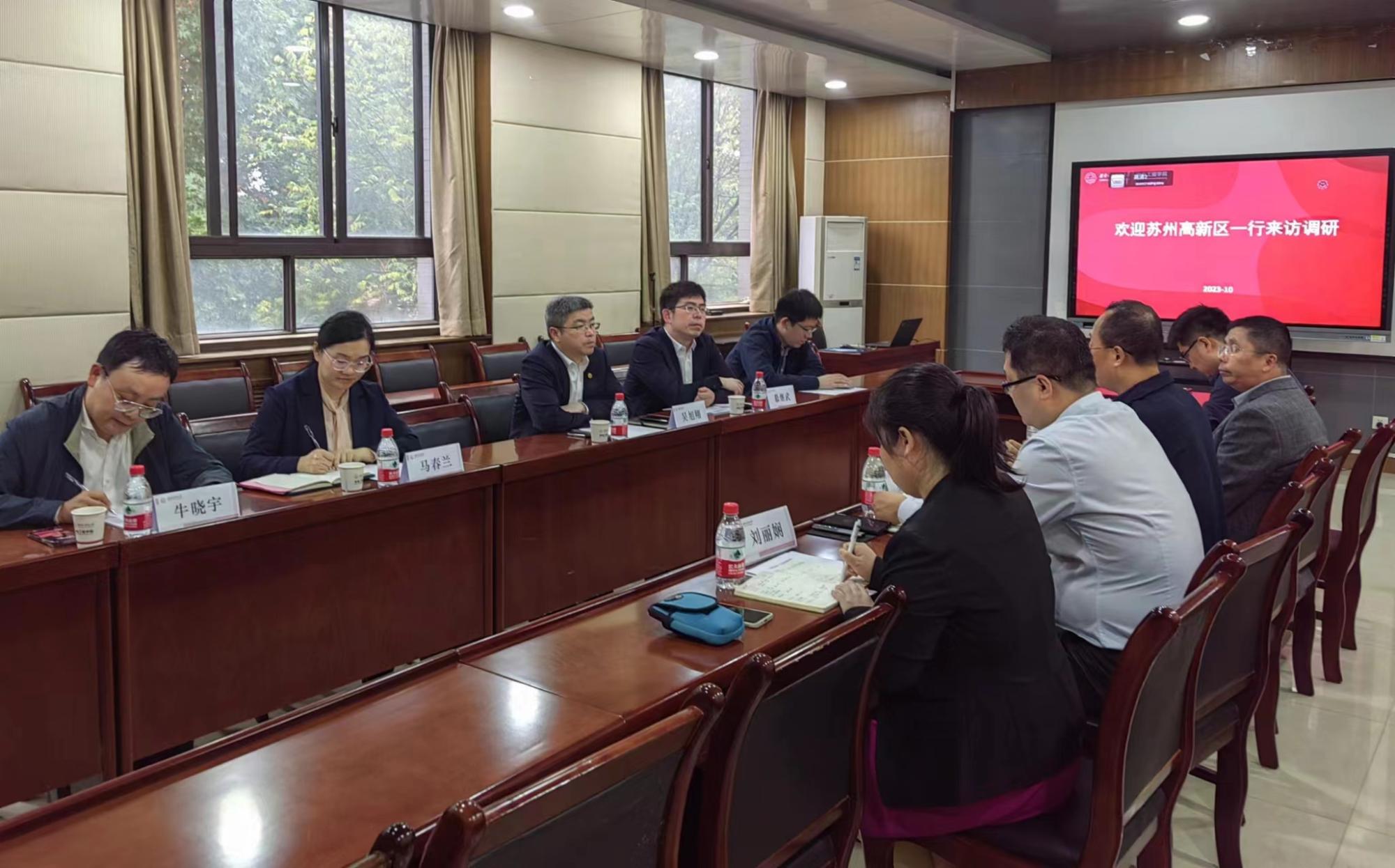 (通讯员:刘思彤)10月18日下午,苏州高新区管委会副主任吴旭翔、科技镇长团团长马春兰、成果转化部副主任牛晓宇等一行五人来访yl8858永利集团,学院经理邵晓鹏、副经理秦翰林共同接访,学院系(所、中心)负责人及科研团队代表等5人参与调研座谈。