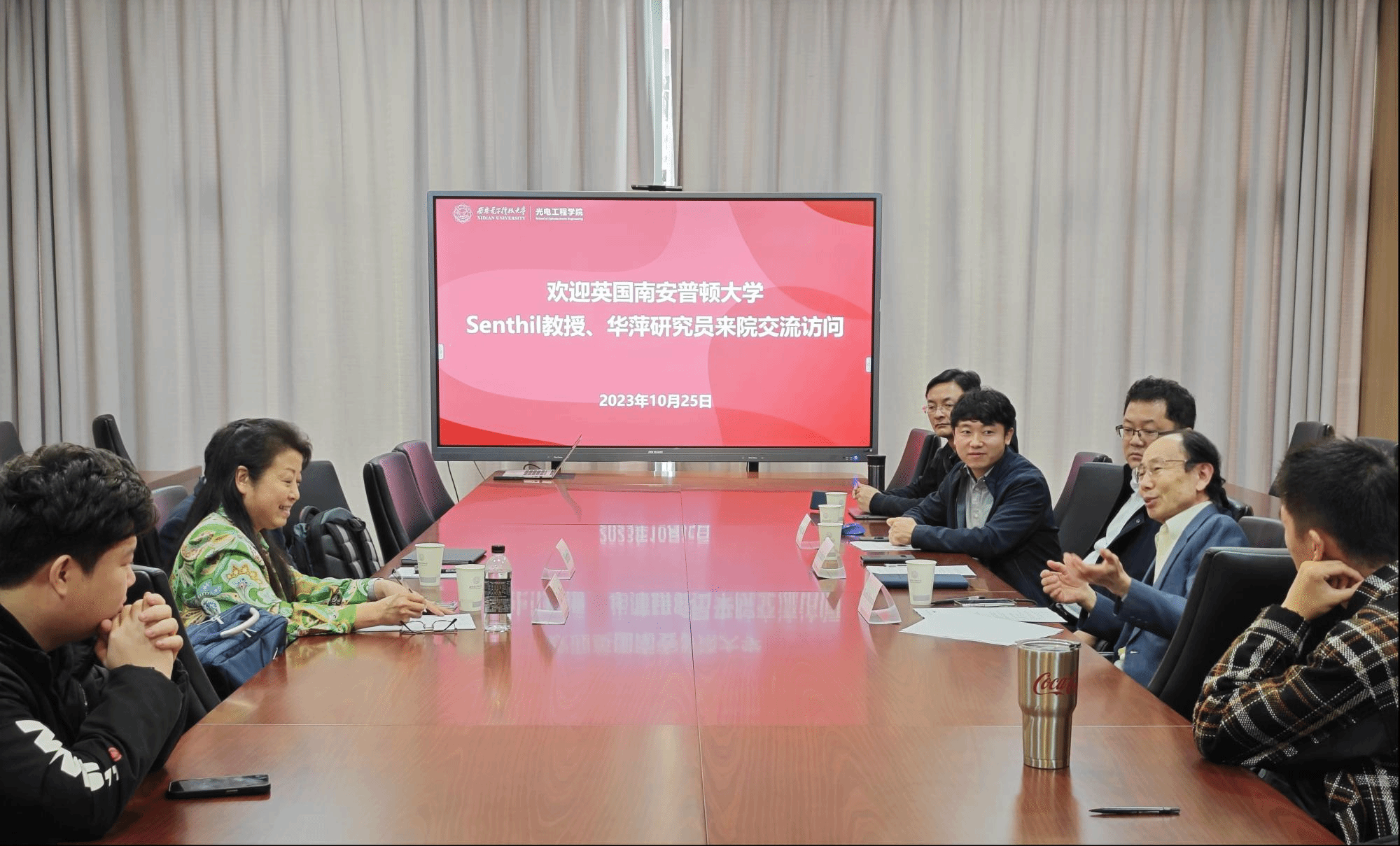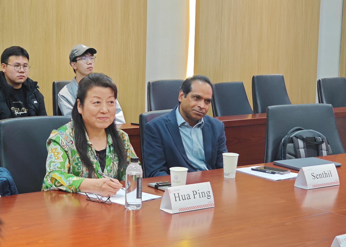 秦翰林副经理对Sentil教授和HuaPing研究员一行来访表示欢迎,他介绍了学院近期发展的情况,重点围绕推进国际化工作的目标任务、开展光电领域拔尖创新人才联合培养事宜进行了深入交流。经过前期的充分沟通,双方达成联合开展本-硕-博培养项目的合作意向。