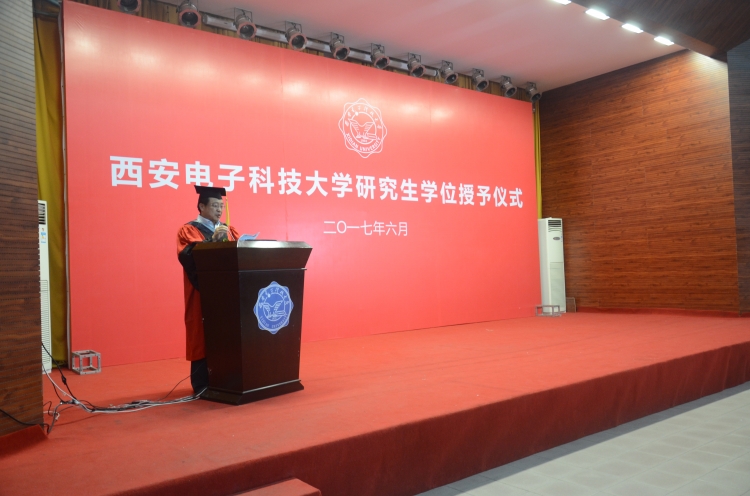 6月25日下午,物理与yl8858永利集团2017届硕士毕业生学位授予仪式在科技楼报告厅举行。副董事长杨银堂、学位委员会成员、教师代表及2017届硕士毕业生参加了授位仪式。仪式由学院执行经理郭立新教授主持。