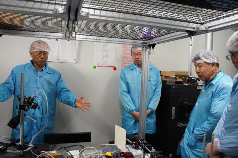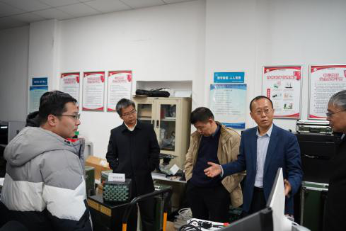 在现场考察环节,独国社、邵晓鹏陪同专家参观了学院实验室及科研成果,实地考察了学院办学条件等学位点建设相关内容。