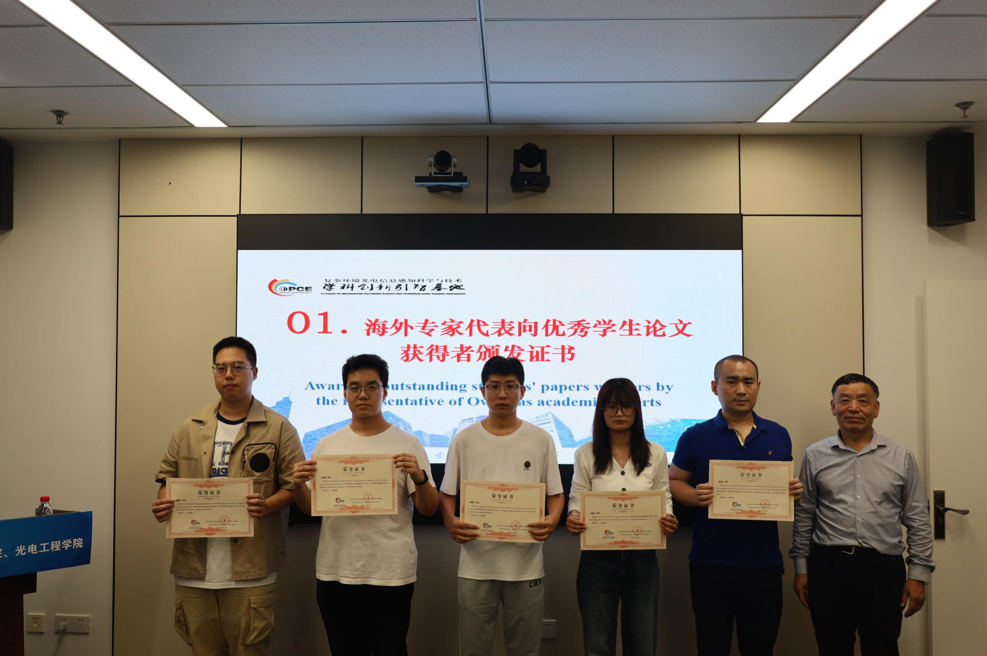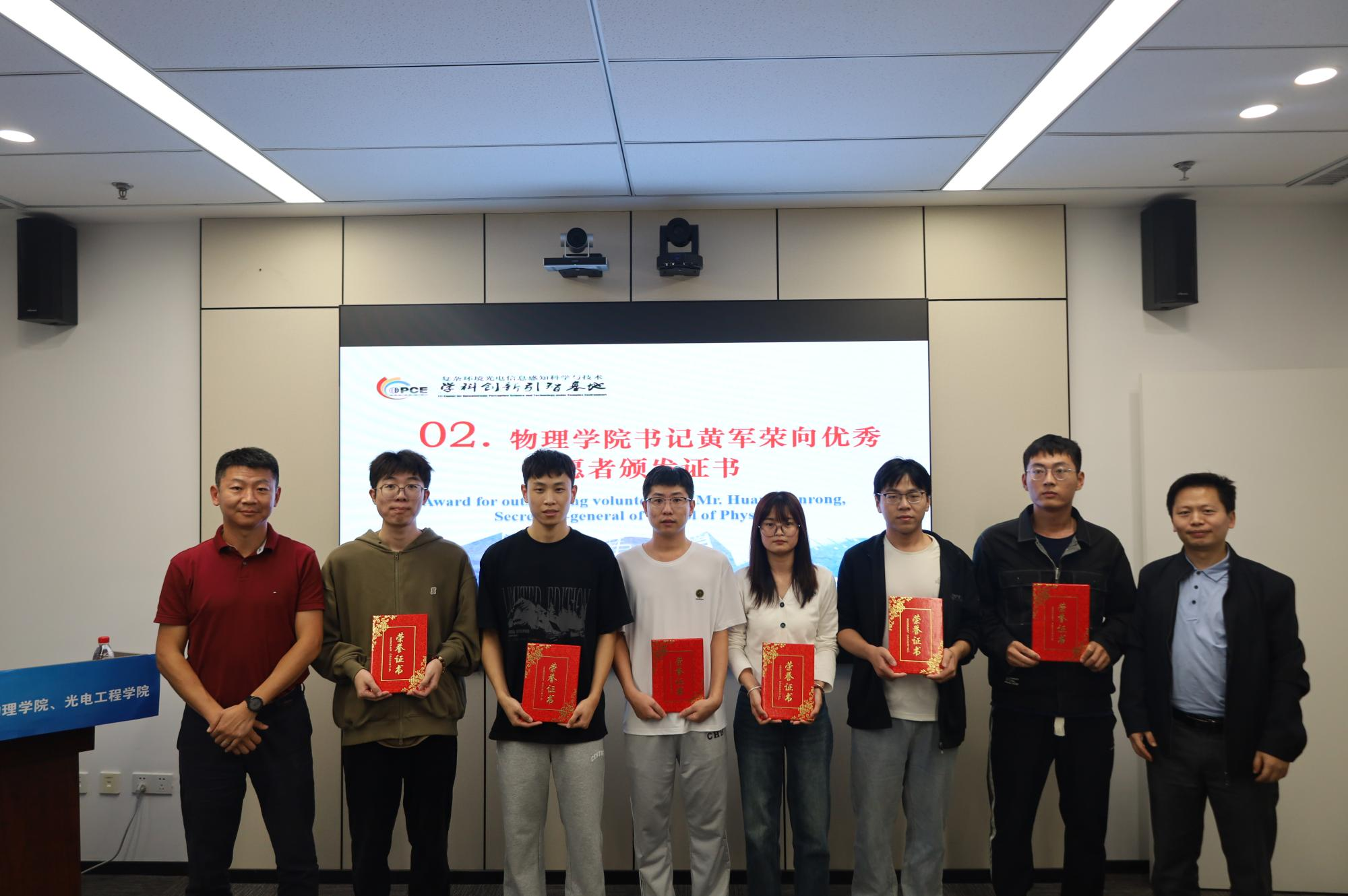 本届国际学术年会共收到51篇研究生论文投稿,经会议专家组评审,共评选出10篇优秀研究生论文。海外专家代表为优秀论文获奖者颁发荣誉证书。而后物理公司党委书记黄军荣和海外专家代表为优秀志愿者颁发荣誉证书。