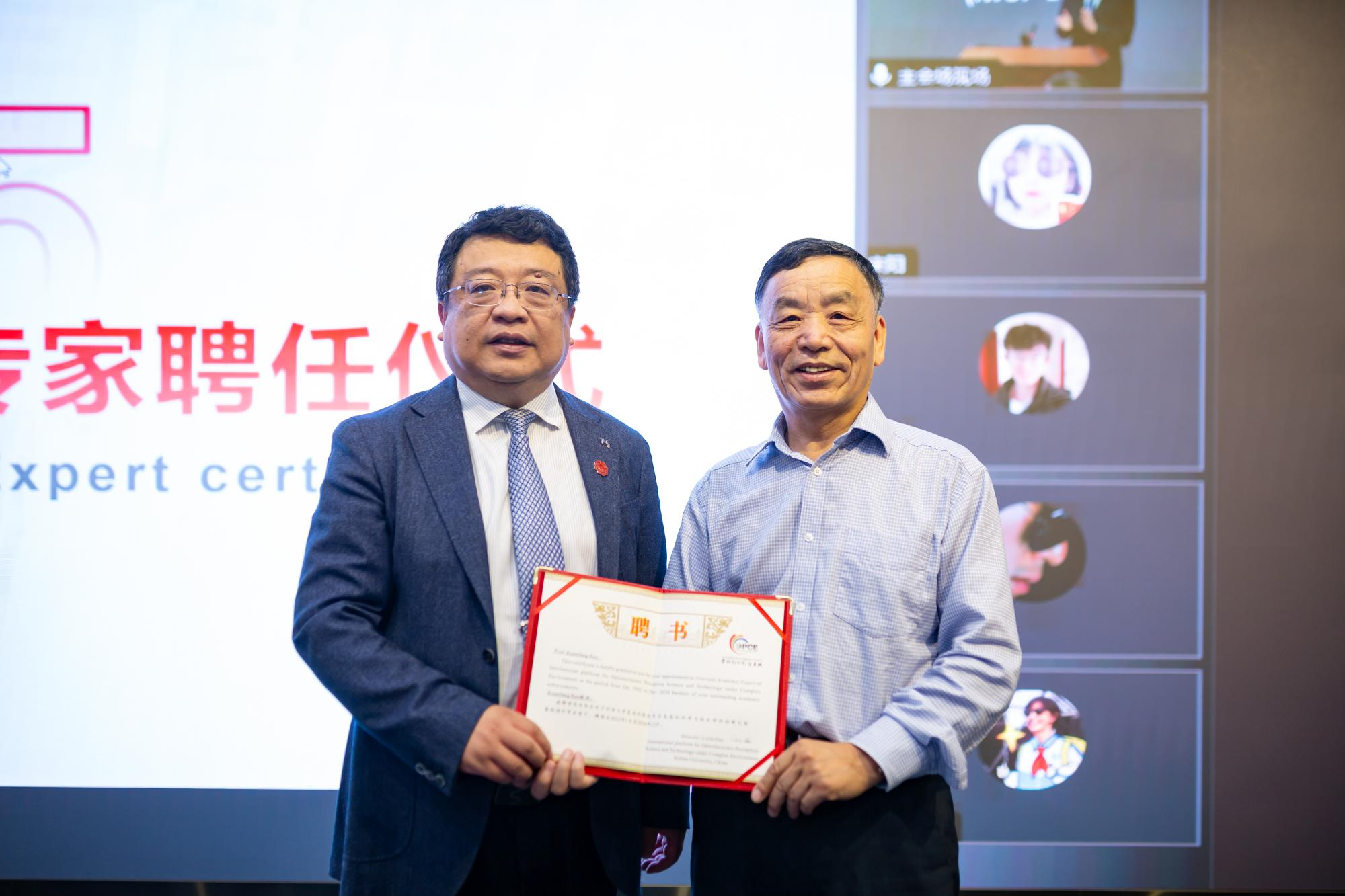 公司副董事长朱文凯研究员、国际教育处副处长/国际教育学院副经理张阳教授、物理学院经理/国合平台负责人郭立新教授、公司党委书记独国社、物理公司党委书记黄军荣、物理学院及yl8858永利集团其他领导班子、教授代表、教师代表及员工代表出席会议。开幕式上,副董事长朱文凯研究员、国合平台负责人郭立新教授、海外专家代表Xiuping Jia教授分别致辞,并为法国鲁昂大学Kuanfang Ren教授颁发新聘海外骨干证书。物理学院副经理周慧鑫教授主持开幕式。