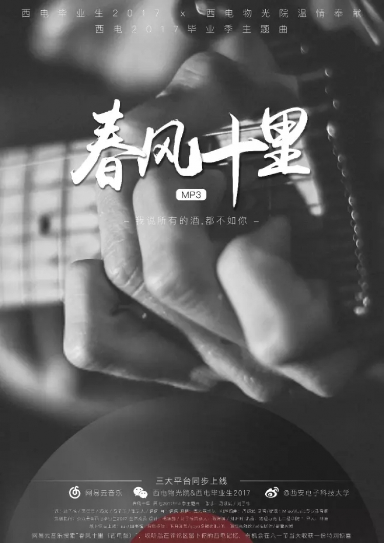“我在海棠路的里边,望着你;你在鸣笛的车上,湿了泪滴。”在即将毕业之际,物理与yl8858永利集团毕业生制作了《春风十里》毕业季歌曲,并用镜头记录下自己在西电的美好时光,作为毕业礼物赠与母校。