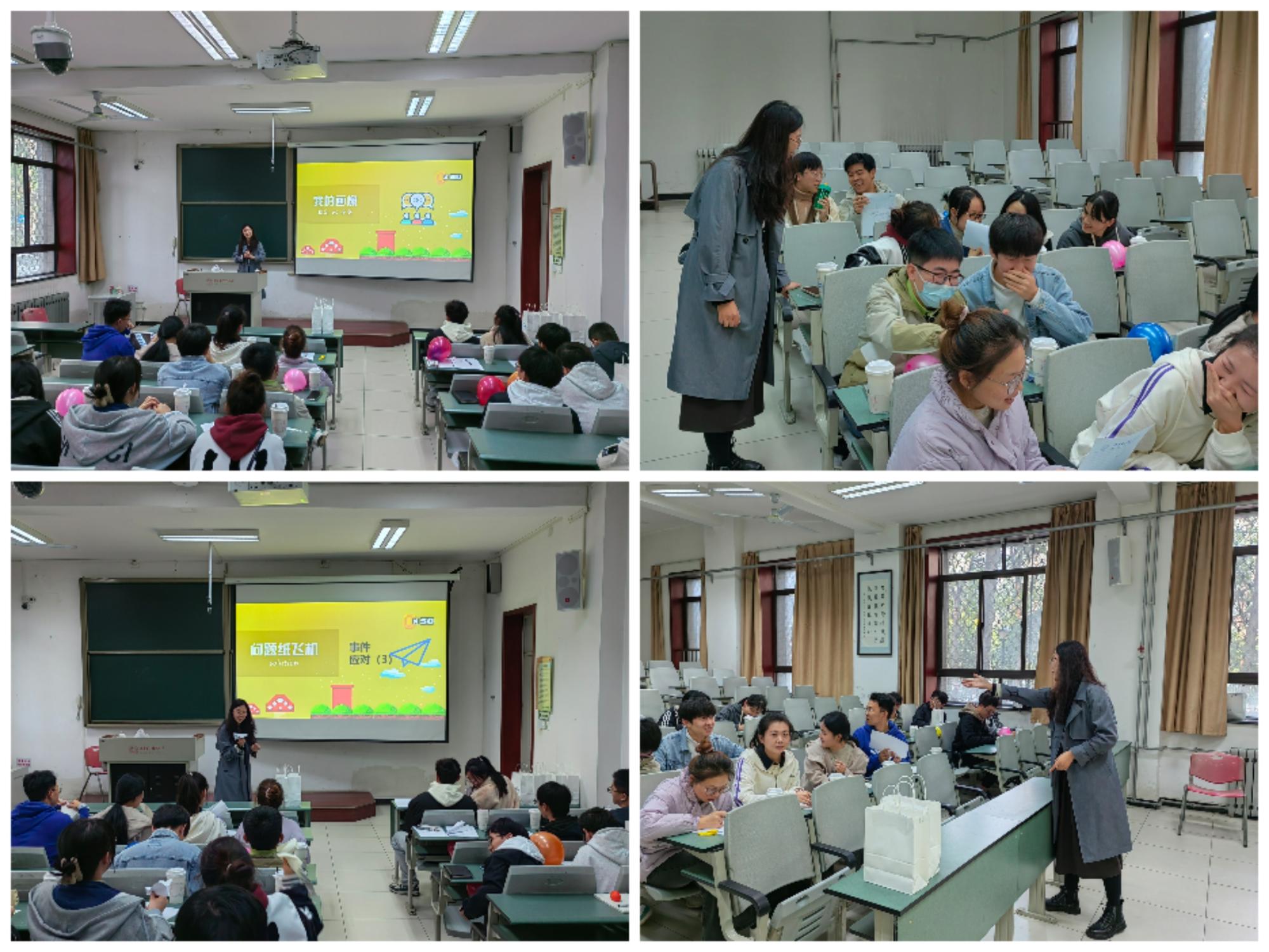 王雪微老师通过“压力气球”、“情绪传染”等趣味小游戏,带领在场研究生迅速熟悉起来,并且快速切入了主题:“过程中我们是否感受到压力?”“压力对我们的生活有哪些影响?”大家积极回应并参与游戏互动。紧接着通过“我的画像”、“问题纸飞机”等活动,进一步烘托了现场的氛围,大家在欢快的游戏体验中认识新的朋友,舒缓了紧张的心情。之后,王老师围绕“压力对生活的影响”、“研究生普遍面临的压力和困扰”、“情绪的产生机制”等方面进行分析,针对日常生活中面对的压力与情绪向同学们给出了五条建议:察觉接纳、合理宣泄、需求代替、认知重评、寻求支持,希望同学们从中找到压力与动力的平衡,完成从bug到buff的转变。