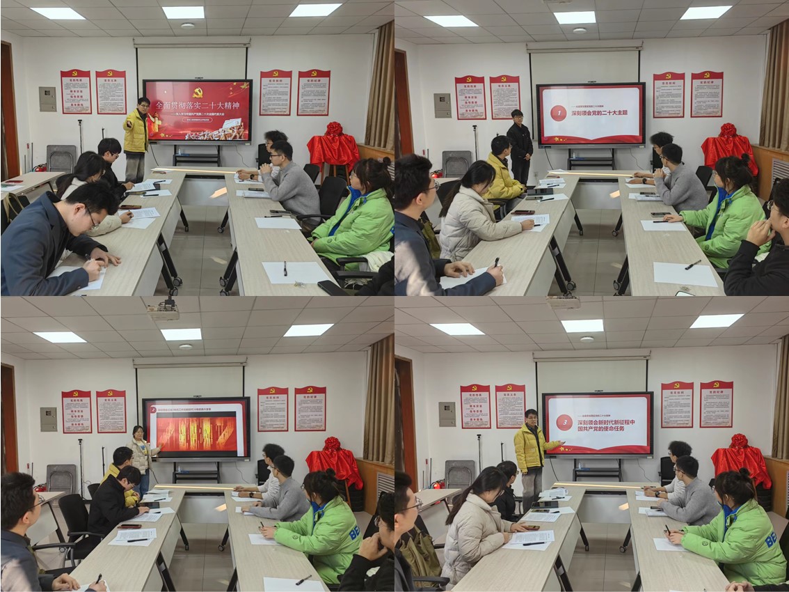 机电工程学院宣讲团以“全面贯彻落实党的二十大精神”为主题展开宣讲,许泽文介绍了机电工程学院宣讲团成员,并对宣讲内容、目的以及意义做了简短概括。随后,赵鹏围绕四个方面对深刻领会党的二十大主题内涵展开论述;郭娅琴带领大家学习了报告中过去5年的工作和新时代10年的伟大变革内容。最后,许泽文阐释了新时代新征程中国共产党的使命任务并作总结发言,他表示我们必须倍加珍惜、始终坚持中国共产党在长期的执政实践中得出的至关紧要的规律性认识,并承担新时代青年的责任使命。
