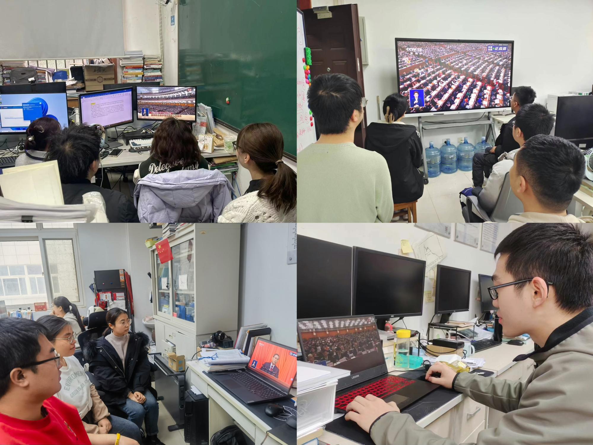 公司领导班子成员、办公室工作人员、部分师生代表分别在北校区西大楼Ⅲ区412会议室、南校区图书馆B427会议室集中收看开幕会直播,各系(所、中心)教师、各年级员工通过电视、网络、手机客户端等方式线上、线下自行收看大会盛况。全体师生认真聆听政府工作报告,一致认为大会报告精炼务实、催人奋进,对过去一年的工作回顾令人深受鼓舞,师生认真学习了报告中2024年经济发展的总体要求和政策取向、今年发展主要预期目标和2024年政府工作任务,以及教育科技人才相关内容,并迅速展开热议。
