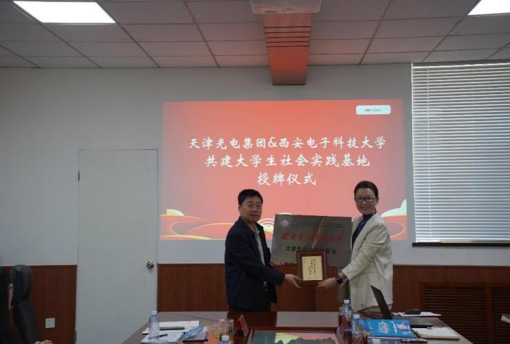 4月23日上午,学院一行来到天津光电集团股份有限公司,公司党委副书记李媛媛、总经理助理李超及各部门负责人对西电师生的到来表示热烈欢迎。李媛媛及各部门负责人介绍了公司运营情况、技术实力及市场方向,独国社从历史沿革、机构平台、人才培养、学科科研等方面介绍了学校、学院及2024届毕业生基本情况,双方围绕建立并深化长效合作机制进行了交流。独国社表示希望双方加强合作,共同推动人才培养和员工就业工作。会上,双方共同为老员工社会实践基地揭牌,为后续双方人才培养工作奠定了良好的基础。学院一行还参观了光电集团历史展览馆、现代化科技馆及生产一线。