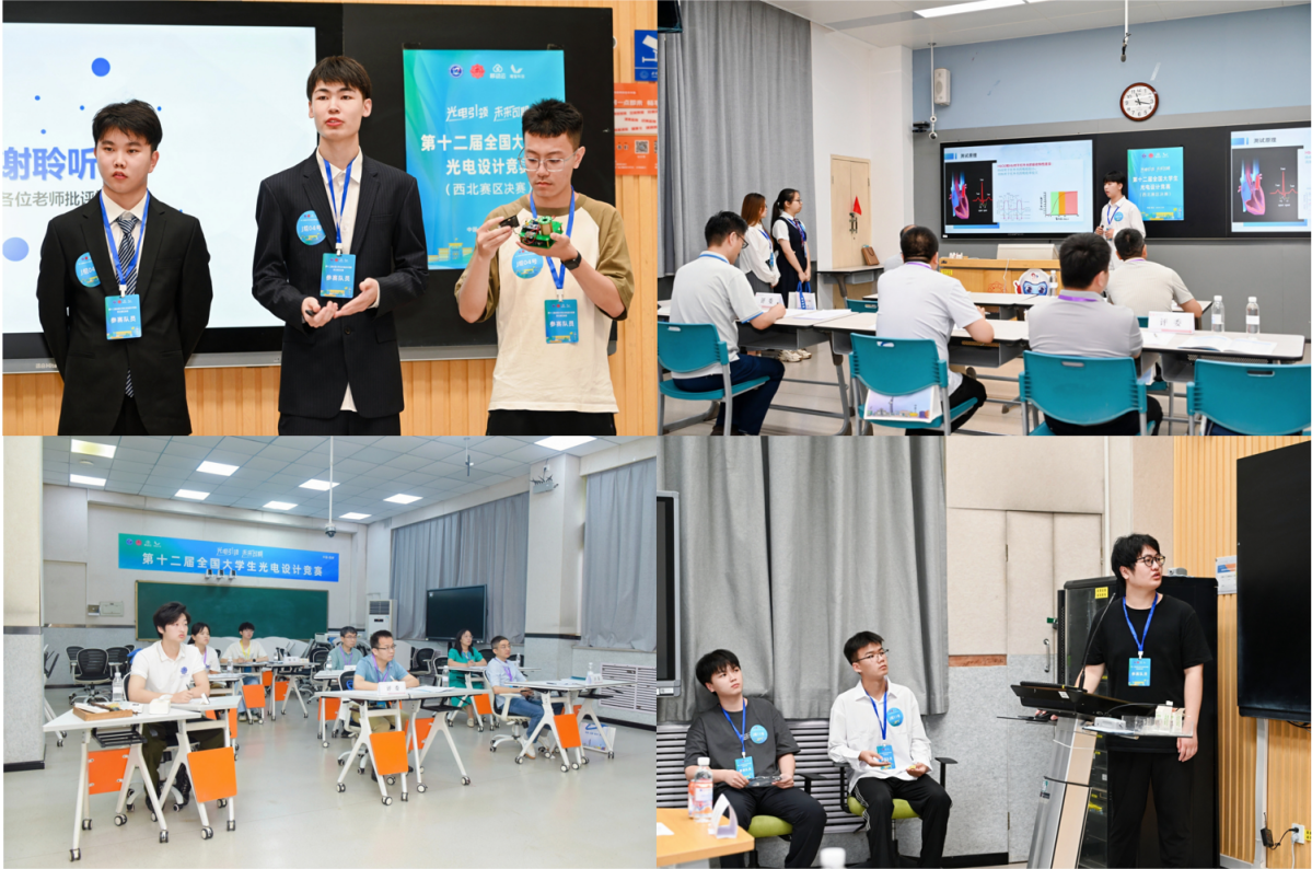 上午10:00,西北赛区决赛答辩在学校C栋教学楼准时开始,参赛队伍在现场展示和答辩演示中,立足热点需求、发展前沿,将光电信息技术与移动互联网、云计算、大数据、人工智能、物联网等新一代信息技术和经济社会各领域紧密结合,从基础理论研究到前沿技术探索,从光电器件研发到新兴应用领域拓展,每一个项目都展现着参赛者对光电科技领域的深刻理解和独到见解。来自不同学校、不同专业的同学们,以饱满的热情和创新的精神,投入到这场科技与智慧的较量中,“向上、向新、向光、向未来”的奋斗姿态和自信风采飞扬大赛始终。