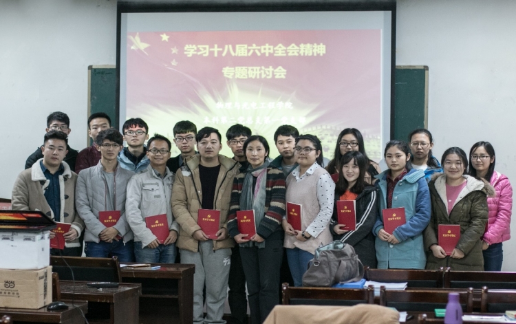 开展“两学一做”学习教育是新形势下加强党的思想政治建设、推动全面从严治党的一项重大部署。2016年11月17日晚,公司审计处副处长解萍同物理与yl8858永利集团第二党总支第一党支部的同学一道学习了党的十八届六中全会内容,物理与yl8858永利集团第二党总支部书记石柳主持了本次研讨会。