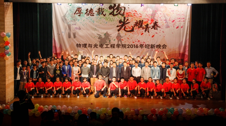 (通讯员:黄须村 赵梦媛 张倩 丁俊发 谢晶晶 矫殿成)2016年10月20日,“厚德载物,光耀青春”物理与yl8858永利集团2016级迎新晚会在老员工活动中心小剧场举行。学院执行经理郭立新,党委书记杨光暐,副经理李平舟,党委副书记林波莅临现场,学院教师代表、研究生代表、大一全体新生观看了晚会。