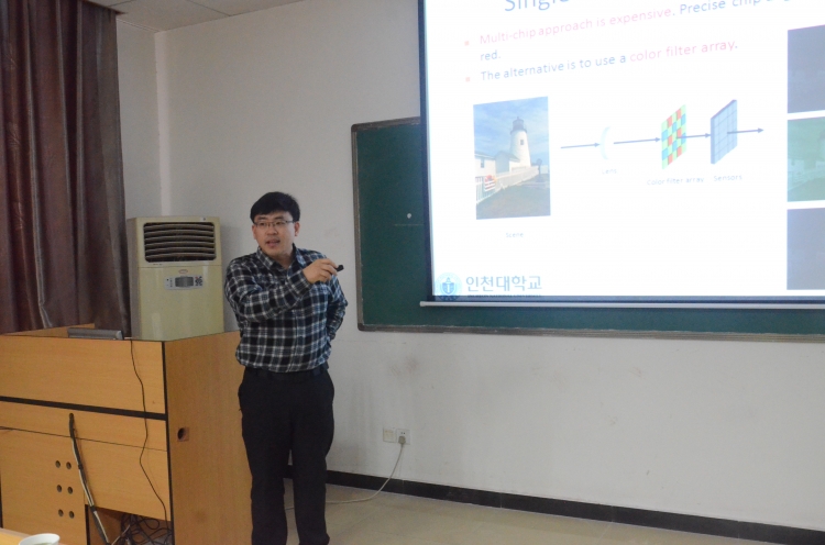 11月20日上午,应学院王谨副教授邀请,韩国仁川大学Gwanggil Jeon副教授在北校区西大楼Ⅲ-405进行了题为“CFA Color Image Reconstruction in Frequency Domain”的精彩学术报告。报告会由学院副经理邵晓鹏教授主持。部分教师和相关专业员工参加了报告会。