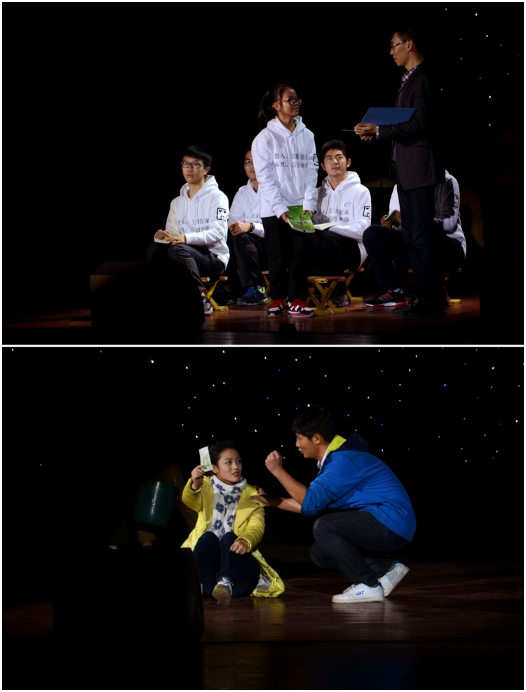 时装秀先以“微情景”开场,将“头雁领航”、“学院大讲堂”、“开心农场”及“一元钱城市生存挑战赛”等学院特色员工工作以情景再现的形式鲜活的展现在观众面前。