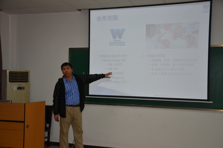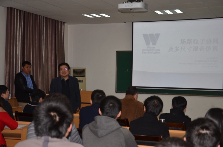 3月20日上午,应学院执行经理郭立新教授邀请,美国WCT公司(Wave Computation Technologies, Inc.以开发尖端计算机工程模拟仿真技术为核心业务)副总裁赵博博士在西大楼Ⅲ-405学术报告厅作了题为“场-路-粒子及多尺寸混合仿真技术”的学术报告。郭立新等多位老师及百余名研究生参加了本次报告会。