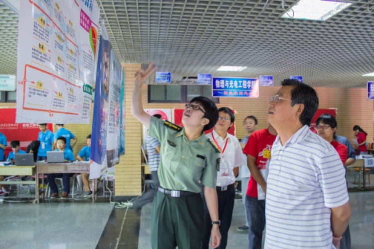 在进行完军训动员大会之后,从五湖四海而来的物光学院的同学与辅导员和学长学姐代表会面。在这里,物光院五光十色的美好生活已通过屏幕展示出来:橙色是员工会的温暖亲切,火红是团委的大方热情,深蓝是科协的周密严谨。而最后的头雁领航活动,更是安排了32位学长学姐照顾我们的生活和学习。他们迅速安排了相关事宜,有忠告,有温馨提示,还有关切的话语,就像大哥哥与大姐姐。尽管相处时间不长,但我们的心已凝聚在一起,尽管面孔还有些陌生,但西电物光学院,已是我们倍感亲切的家园。