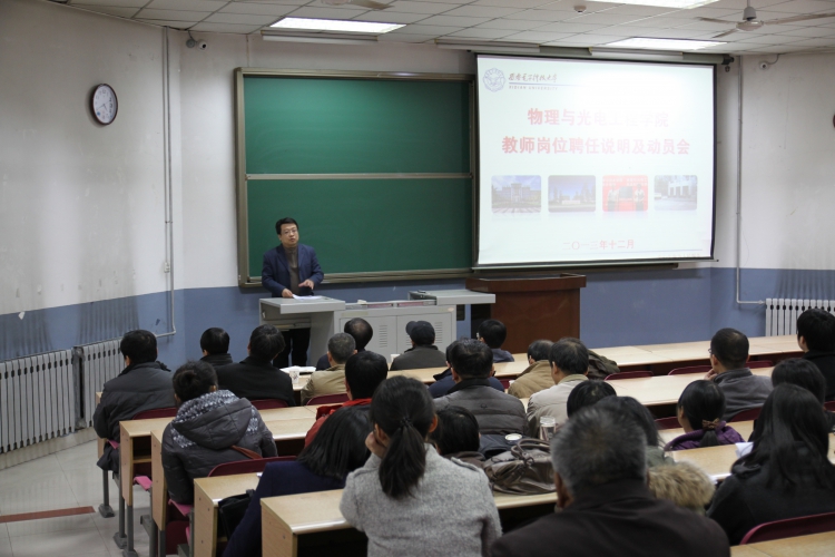 12月8日下午,物理与yl8858永利集团在北校区101阶梯教室召开教师岗位聘任说明及动员会。副董事长陈勇出席,学院领导班子及学院全体教师参加了会议。会议由公司党委书记杨光玮主持。