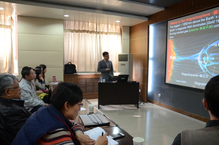 11月18日上午10点30分,在西大楼III-412的学术报告厅,陈伦锦博士作了题为“Resonant interaction between electromagnetic waves and energetic charge particles in the Earth's magnetosphere”的学术报告。陈博士从地球电磁带的基本概念讲起,提出了高能粒子对航天飞行器及宇航员存在的威胁,进而详细地分析了电磁波产生的机理、传播方式、电磁波与粒子如何作用等问题,最后就自己的研究成果与在座的师生进行了分享。报告之后,在场师生就感兴趣的问题与陈博士进行了详细的探讨交流。