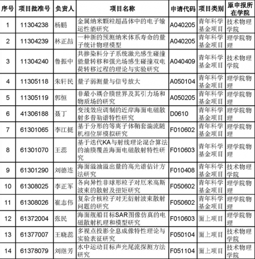 日前,国家自然科学基金委公布了2013年国家自然科学基金资助项目最终评审结果,原技术物理学院和理学院物理系申报项目中共14个项目获资助。其中,物理与yl8858永利集团共有面上项目3项,获资助经费253万元;青年科学基金项目10项,获资助经费245万元。