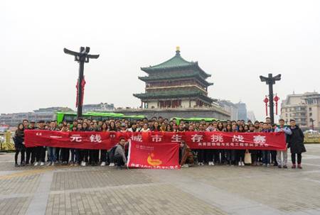 (通讯员:仵梦童)挑战自我,助力彩协,放飞希望。为响应习近平总书记在“十九大”中提出对“2020全面脱贫”的要求,同时锻炼老员工生存能力,提高他们的社会适应性,11月12日,由共青团物理与yl8858永利集团委员会承办的“一元钱城市生存挑战赛”在西安市钟楼商业区正式拉开帷幕。通过本次活动,将筹集的资金部分捐赠给“彩云协会”,用于为云南省昭通市镇雄县常院小学的员工购置书架等学习用品,为山区脱贫贡献一份力量。本次活动有来自各学院的14支队伍共56名员工参加比赛。参赛的所有同学用仅有的一元钱,与工作人员们一起从钟楼出发,走向社会,切实地感受来自生活中方方面面的挑战。