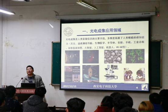 (通讯员:黄桓、马忠林、张倩)2017年12月13日晚7点,一场有关光电成像的讲座在E楼三区315如期举行,主讲人王晓蕊教授为同学们生动细致地介绍了光电成像的发展、应用、前景以及最新的科研成果,简明扼要地剖析了三维显示、虚拟现实(VR)、增强现实(AR)、混合现实(MR)的原理和区别。在讲座中,王晓蕊带领大家充分领略了科技日新月异的魅力,为大家上了一堂精彩难忘的课。