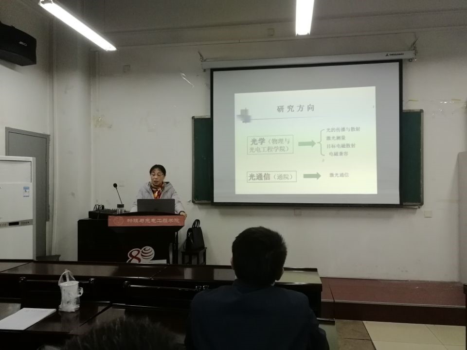 韩教授首先详细介绍了光学和光通信的研究方向与硕士、博士的招收情况,为我们重点讲解了光学方向下光的传播与散射、激光测量、目标电磁散射、电磁兼容以及光通信方向下的激光通信的研究情况,用多个实例讲述了韩教授及她的团队,与国际院校和多家研究所合作开展研究,并取得许多有重大意义的研究成果,在该领域已然是排头兵。