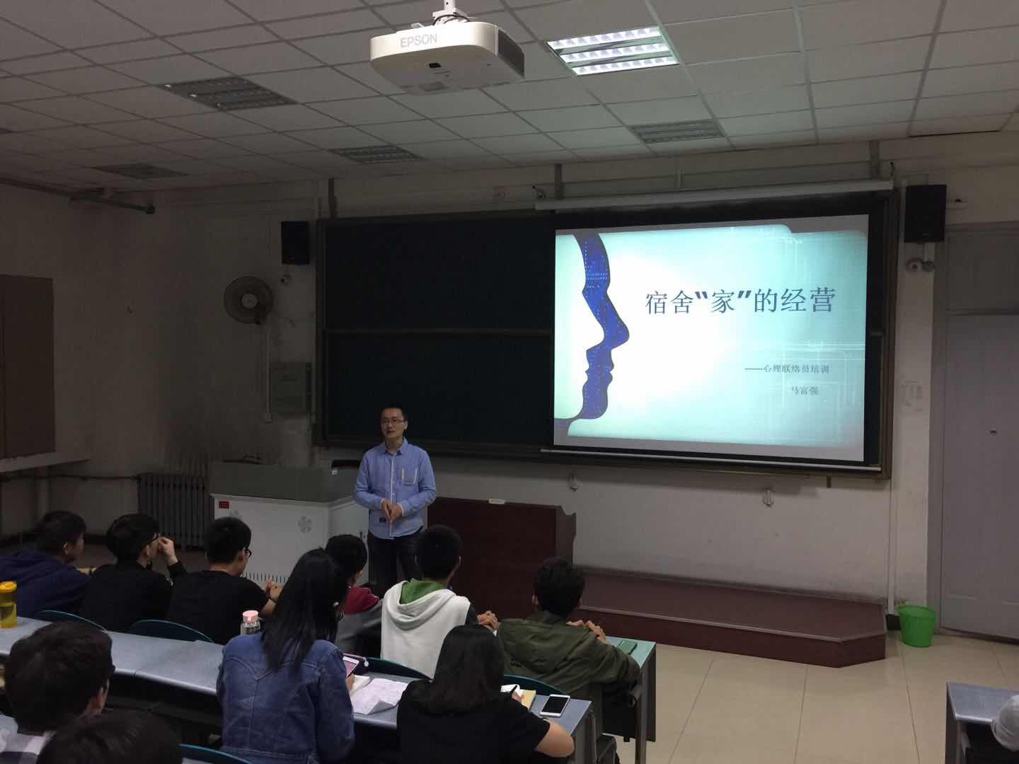 面对当前的高校资助工作中出现的心理体验被忽视、心理资助表面化等现象,4月9日晚7时,学院马富强老师为大一受助员工做了主题为“宿舍‘家’经营”的讲座。马富强以宿舍为话题,分享了一些积极应对宿舍内矛盾和问题的方法,让他们认知到积极情绪的重要性,努力培养他们自信乐观等心理品质,以此促进受助员工身心的全面发展。