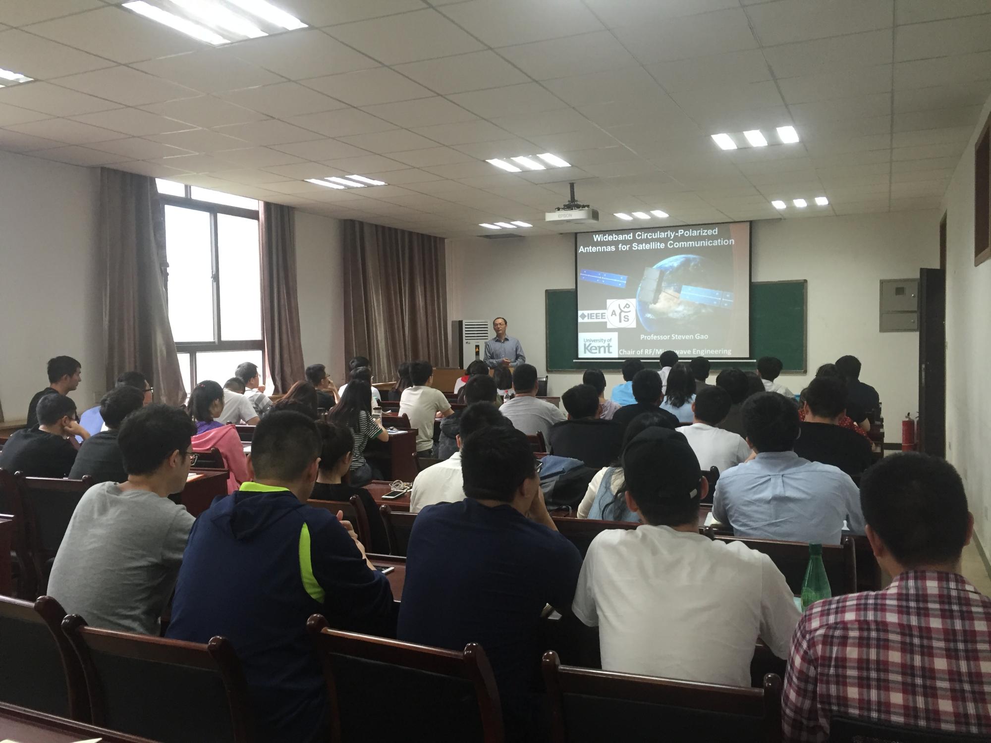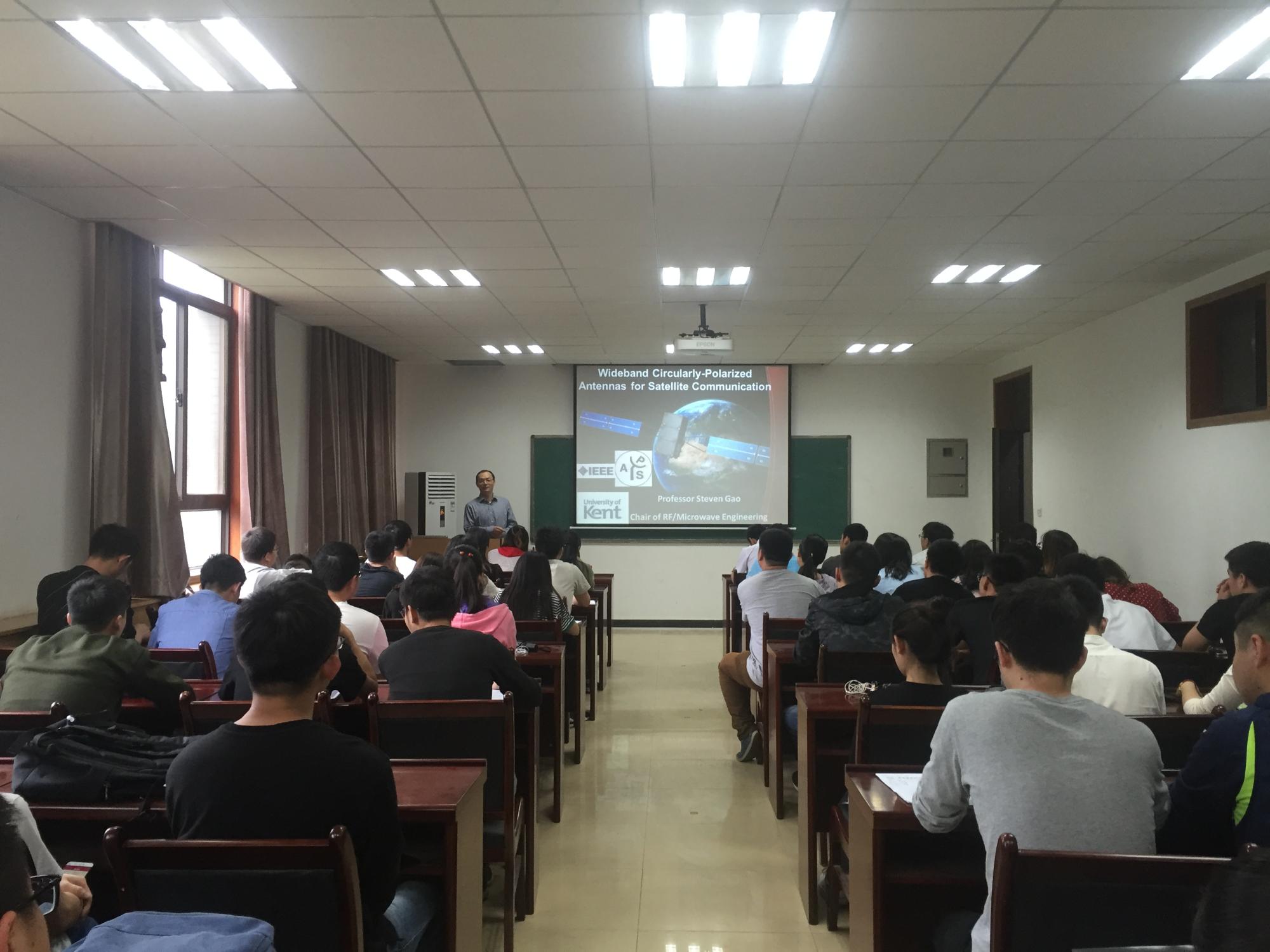 5月4日下午,高式昌教授于西大楼Ⅲ-405报告厅做了题为“Wideband Circularly Polarized Antennas and Arrays for Satellite Communications”的学术报告,报告会由学院副经理周慧鑫教授主持。报告中,他以天线在日常生活中的应用作为切入点,引出了学术报告的主题——卫星通讯中的宽带圆极化天线和阵列。他详细地讲述了近年来宽带圆极化天线元件和阵列卫星通讯的发展和基本原理,并通过全球导航卫星系统(GNSS)、无线局域网和无线电力传输系统等16个具体应用实例展示了目前该领域的研究进展。随后,他图文并茂地展示了自己所在团队在圆极化天线领域所做的相关工作,重点讲解了使用倒S元素的宽带圆极化天线元件和单层宽带圆极化天线高效率反射器的具体研究情况、目前取得的研究成果和今后的应用前景。