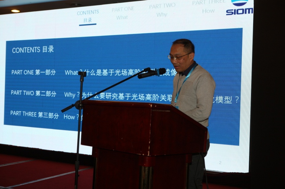 中国科学院上海光学精密机械研究所的韩申生研究员作了题为《基于光场高阶关联的成像优化模型研究》的报告,提出了关联成像重构算法,算法可进一步提高鬼成像的成像性能。