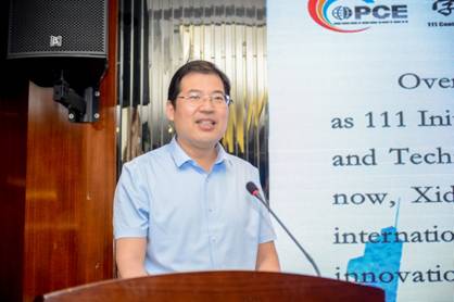 该引智基地负责人郭立新教授上台致辞。他首先代表基地工作组的全体成员对学校的大力支持和专家学者的出席表达诚挚的谢意。他谈到,复杂环境光电信息感知科学与技术创新引智基地依托公司“光学工程”、“物理学”两个一级学科和多个学术研究和人才培养平台,面向国家光电工程领域重大战略需求,以“复杂环境光电信息感知科学与技术”为主要方向,通过理工交融,重点对复杂环境与目标光电特性、光电探测技术、光电信息与图像处理等领域的基础理论、关键技术和应用研发等开展深入的国际合作研究。他希望与会学者通过学术年会的交流平台,深化合作交流、加深相互了解,将该引智基地建设成为光电信息感知与处理领域内具有国际影响力的学术交流平台。