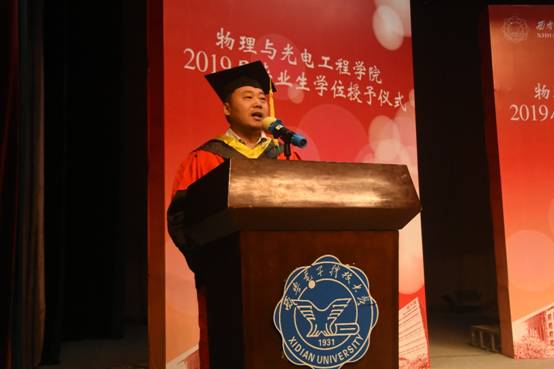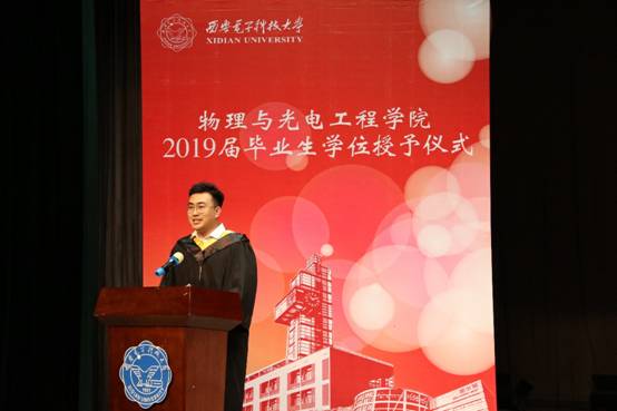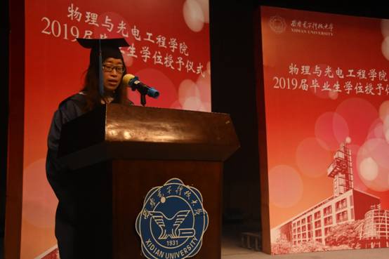 研究生代表高春娟、本科生代表程嘉偌代表毕业生上台发言。他们回忆求学历程,将在学院里学习生活的点点滴滴汇成了对学院、老师和同学的恋恋不舍,并倡议全体毕业生谨记学院教诲,继续以“物光人”坚定前行的信念和勇于开拓的精神,让青春在新时代的广阔天地中绽放。