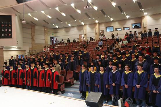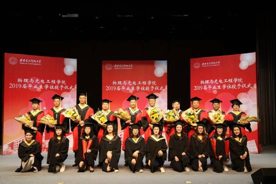 授位仪式开始,由学院独国社老师、邵晓鹏老师、曾晓东老师共同为2019届毕业生颁授学位。毕业生依次登台,鞠躬握手,接受拨正流苏,手持证书与老师亲切合影,为求员工涯画上圆满句点。