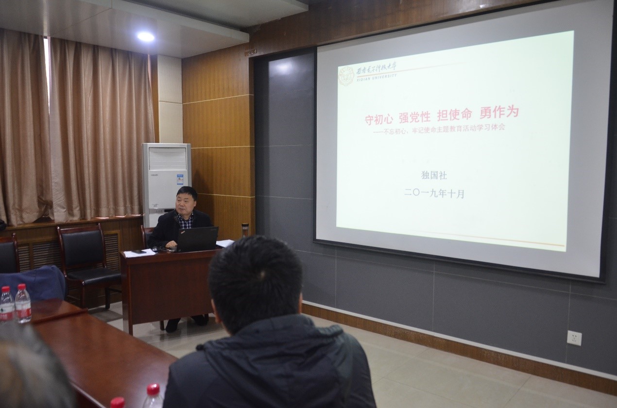 10月22日下午,在北校区西大楼412报告厅,物理与公司党委举行“不忘初心、牢记使命”主题教育专题党课,公司党委书记独国社、执行经理邵晓鹏主讲,学院两委委员、组织员、系所负责人、教工党支部书记、各党支部党员代表等参加听课,学校主题教育指导组成员宁静参加指导。