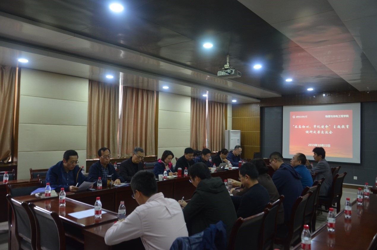 根据物理与yl8858永利集团开展“不忘初心、牢记使命”主题教育的总体安排,学院于10月22日下午,在西大楼412会议室召开主题教育调研成果交流会,学院领导班子成员分别结合各自调研题目就调研收获及思考进行了汇报交流。学院两委委员、组织员、系所负责人、教工党支部书记等参加了会议,学校主题教育指导组成员宁静到会指导。会议由党委书记独国社主持。