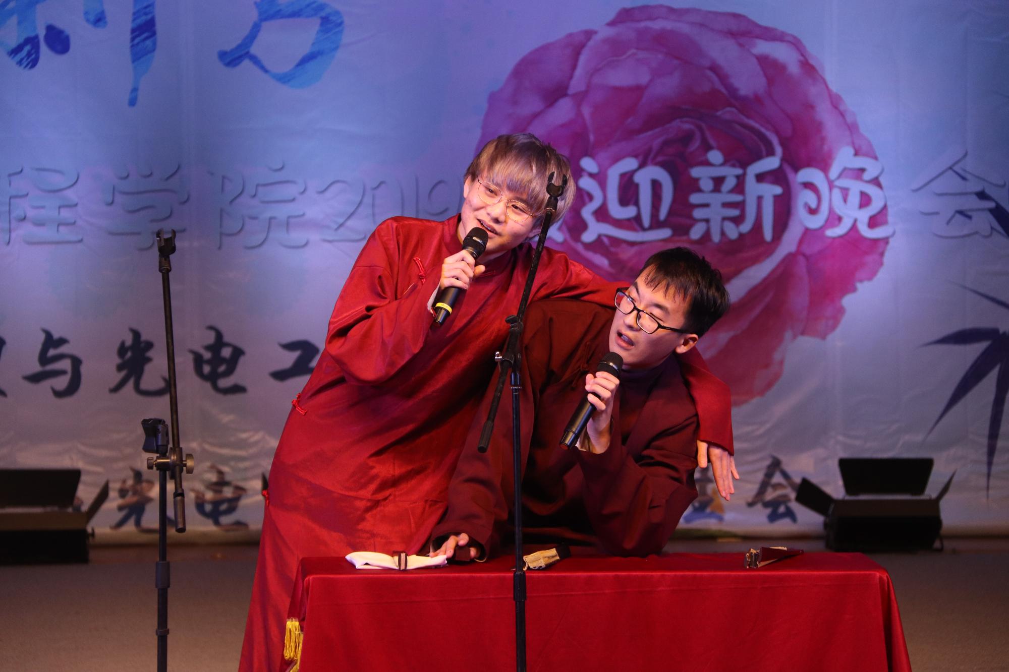紧接着,郑浩楠同学一首《光年之外》将观众们带入晚会的欢乐气氛;员工会文艺部为同学们带来了原创光影剧《光影少年》,用肢体与光影的绝妙配合展现了新学期专属于新生的西电记忆:从独自踏上火车的紧张、告别时的泪水、初到校园的激动以及认识新朋友的欣喜等;口琴和手风琴合奏的《未闻花名》轻柔舒缓,令人沉醉;辅导员王晨辉、韩金虎现场抽取了幸运观众并为新生送上了祝福,希望同学们在美丽的yl8858永利集团能够不负韶华、学有所成;抽奖环节过后,晚会继续进行。介四相声社带来的相声《我要招新》令现场观众捧腹大笑,欢笑声不绝于耳;B-force街舞社带来的舞蹈《快乐黑怕》,用明快的节奏带我们领略了协调的美感与团队的力量;新生同学展现了自己的风采,带来的歌曲串烧娓娓动听。在此之后又到了紧张刺激的游戏环节,在场观众自发上台参与游戏《谁是卧底》,大家斗智斗勇、绞尽脑汁,参与互动的同学们均领取到了精致的小礼品。