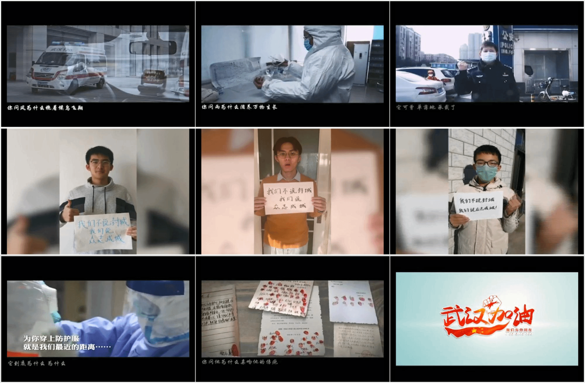 同学们用笔在纸上写下“我们不说封城,我们说众志成城”、“武汉加油,中国加油”等暖心文字,拍摄照片上传投稿,院员工会宣传部工作人员从央视网、央视新闻、共青团中央等线上平台广泛收集新闻素材和感人事迹,选取歌手毛不易的《无问》为背景音乐,结合同学们的投稿照片,制作完成了《期盼黎明,致敬英雄》战疫专题祝福视频。视频中真实还原了一线工作人员不惧艰难险阻牢守一线的奔波身影,反映了从病患到医护人员坚定乐观积极向上的抗疫态度。在视频的末尾,学院同学送上了诚挚的祝福,表达了物光青年对抗疫一线医护人员及患者朋友的祝福、鼓励以及打赢疫情防控阻击战的坚定信念。