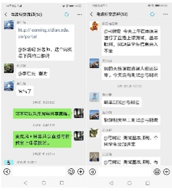 集团牵头,学院执行,电波研究所老师积极配合,积极组织多场平台、软件培训,购置了防噪音麦克风消除了背景噪音,安装软件清除恶意广告小程序,联系员工建立微信群以便及时解决突发问题……大家群策群力、献计献策,大家的紧张和担心,逐一化解。郭立新老师身兼数职,科研、管理事务繁忙,但是他依然保持着对工作的热忱,积极投身于教学准备、调试,认真地讨论、交流,在“演习”、试验之后积极反馈、改进。全体教工积极发扬“永不消逝的电波”精神,战胜了各种困难生动的电波所课程与员工如约而至。