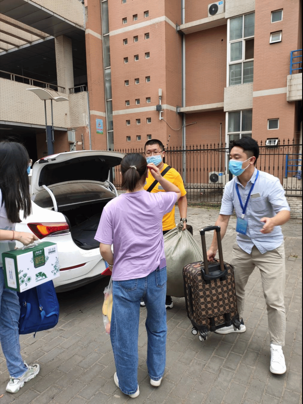 报到当天,辅导员根据此前掌握的新生来校时间安排接待班次,同新生逐一对接联系。上午9时,南校区东门迎来了第一位电子科学与技术专业第二学士学位新生,辅导员按照工作要求查验新生身份信息、扫描录取通知书条形码、查看西安市一码通等,并安排车辆将新生及行李送至对应公寓楼,由学院公寓接待组工作人员协助办理入住手续、领取生活物资等。直至下午18时,所有应到14名新生报到完毕,学院第二学士学位新生接待工作圆满结束。
