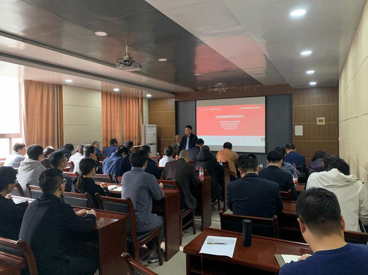 10月28日下午,物理与公司党委理论学习中心组(扩大)于北校区西大楼412会议室召开会议,邀请陕西党史专家、西北大学特聘教授姚文琦做了题为“西北根据地历史与地位”的专题报告,副董事长蒋舜浩出席了学习会议。学院领导班子成员、党委委员、纪委委员、师生党支部书记等参加了会议。会议由公司党委书记独国社主持。