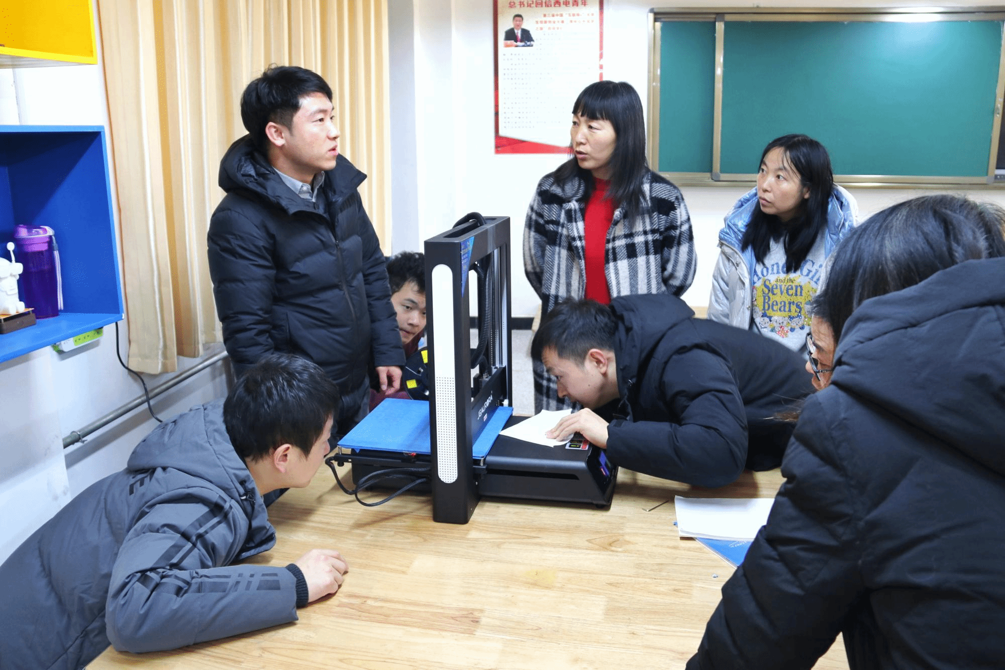 紧接着,姬策面向“科创小屋”第一期员工开展了CIE机器人实践课程,员工们分成小组动手实操,结合教师讲解对电子元器件进行辨别,同学们配合下完成组装,历时一个半小时最终形成了小组作品,城南学校教师就3D打印机组装使用维护等同西电教师展开交流。