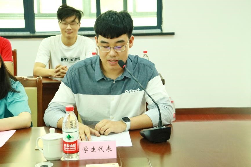 第二学士学位班班长沙岩松作为员工代表分享了在西电的学习生活体会,对学校提供的优质学习环境和团队力量表示感谢,谈到在新的学期要树立新的目标、攀登新的高峰,也希望在未来有机会能将在浔学习的成果,“正向循环”注入南浔未来建设。