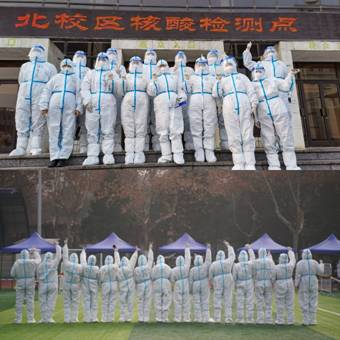 50余名志愿者经过培训指导、明确分工后,迅速进入工作状态。录入核酸信息、进行体温检测、维持现场秩序……全员核酸检测在有条不紊地进行,防护服面罩上布满了雾气,拿着测温枪的手早已被冻得通红,但所有志愿者不畏艰难,始终坚持在一线,在规定时间内圆满完成了北校区全员核酸检测。