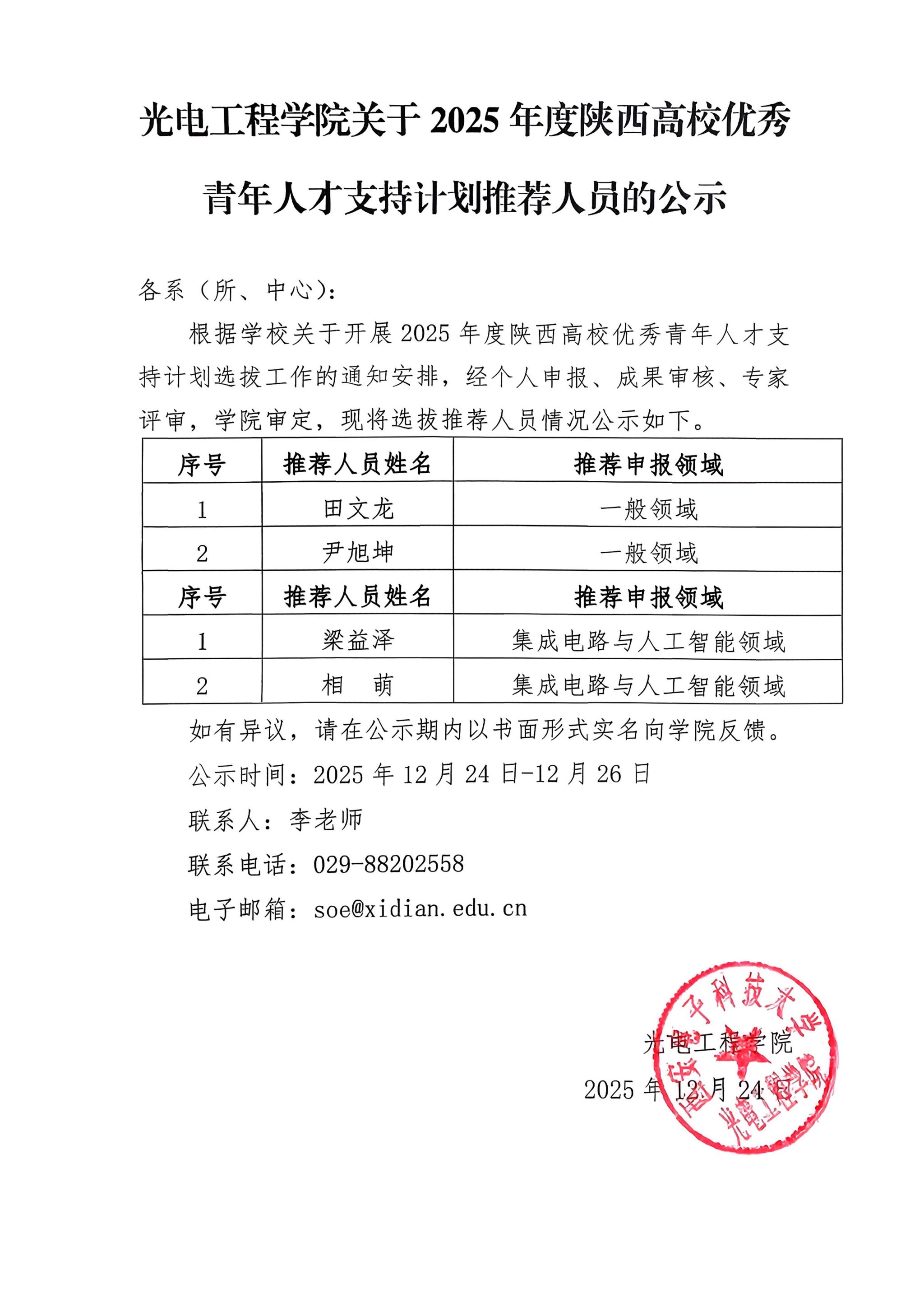 yl8858永利集团关于2025年度陕西高校优秀青年人才支持计划推荐人员的公示