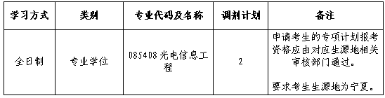 因学校指标调整,现追加2个“少数民族高层次骨干人才计划”专项指标至085408光电信息工程专业,拟接收调剂生。现对调剂事项通知如下: