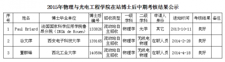 根据学校人事处/人才办“关于对在站的博士后进行中期考核的通知”要求,学院于2015年4月15日召开了在站博士后中期考核评审会议,对3名博士后进行了考核评审。