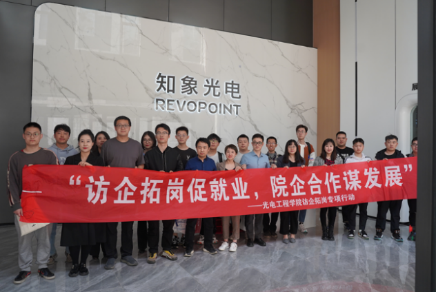 4月11日,学校师生一行来到知象光电科技有限公司,公司联合创始人杨涛、MEMS技术总监白民宇、人力资源总监王芳等对学校师生的到来表示热烈欢迎,并介绍了公司科研实力、产品品类、技术方向、人才需求和成长平台等方面情况。杨涛谈到,希望充分发挥双方专业、人才、资源等优势,通过项目合作、技术交流和人才培养等方式建立常态化互动交流机制,深化产学研合作。公司党委副书记李洁从历史沿革、机构平台、人才培养、学科科研等方面介绍了学院基本情况,希望双方以人才招聘和培养为切入点,对接供需并开展多层面、多角度、多点位的合作交流,积极探索院企合作创新模式,推动毕业生高质量充分就业。学校师生一行还参观了公司展览厅和产品生产实验室。