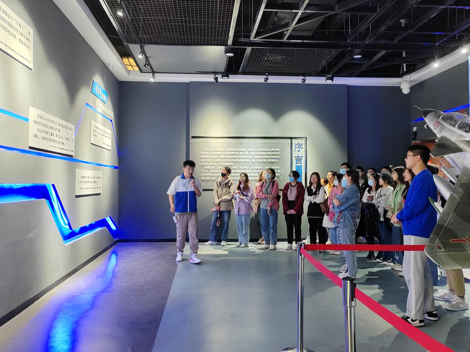 在博物馆,同学们在讲解员的带领下依次参观了分序厅、通信厅、雷达厅、计算机厅等七个部分。同学们认真聆听,有序观看,详细了解了由公司参与研制的世界领先技术流星余迹通信系统、被誉为“中国天眼”的500米口径球面望远镜的零件实物、国内首例空中防撞系统天线等重大科研成果,真切感受到公司建校以来为中国电子科技事业所做出的重要贡献,体会到一代代西电前辈们艰苦奋斗、自强不息、无私奉献、不断探索创新的崇高精神。
