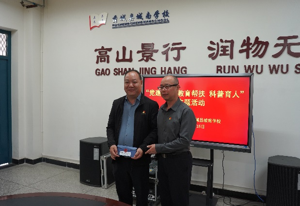 教育帮扶捐赠仪式上,副处级组织员黄小强代表学院领导班子向城南学校捐赠助学金,副经理秦翰林、党委副书记李洁代表学院为员工捐赠文体用品。双方在亲切友好的氛围中就教育、科技的未来发展趋向、教育帮扶工作的计划及具体帮扶措施等做了深入细致的交流探讨。